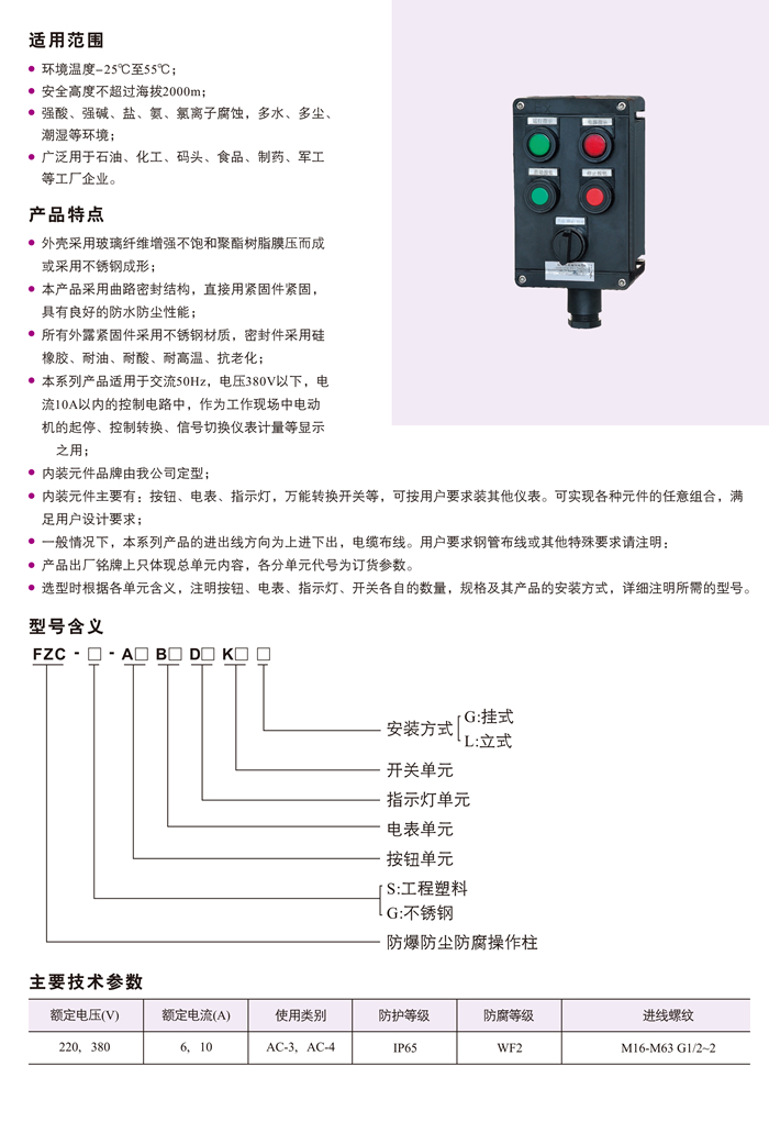 产品标签:三防 防爆操作柱 FZC防水防尘防腐操作柱